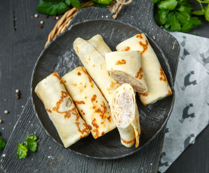 Описание: Блины с говядиной — это сытное блюдо, которое сочетает в себе нежность тонкого теста и насыщенный вкус мясной начинки.