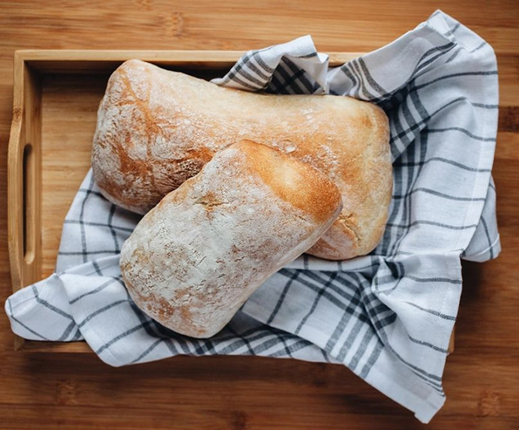 Описание: Воздушная классическая чиабатта. Обладает пористой и воздушной структурой, а сверху покрыта хрустящей корочкой. Вкус южного солнца Италии просто тает во рту! В состав входит натуральное оливковое масло Extra Virgin. Тесто замешивается вручную и созревает естественным путем в течение суток на основе оренбургской пшеничной муки высшего сорта, чистой воды и дрожжей. Выпекается в подовой печи.
