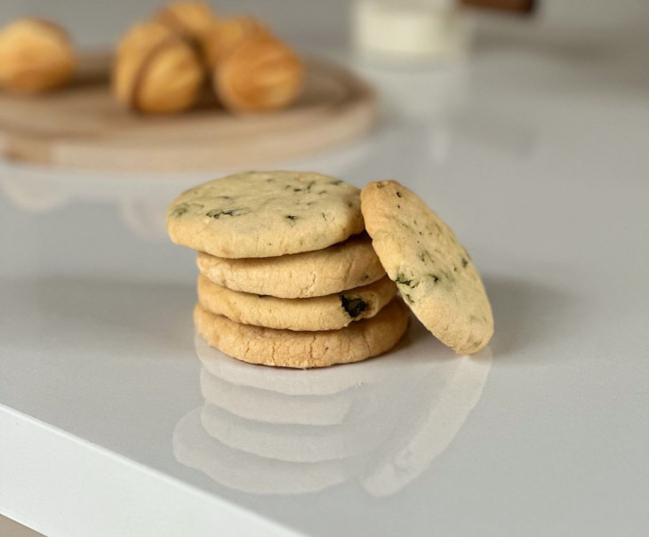 Описание: Несладкое печенье с базиликом — новый гастрономический опыт. Нежное тесто, приготовленное на основе высококачественных ингредиентов, обогащается ароматными листьями базилика, что придает уникальный вкус и характер.