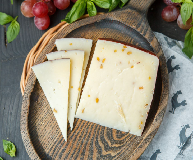 Описание: Качотта полутвердый сыр, произведенный из коровьего молока с добавлением пажитника. Имеет кремовую однообразную светлую структуру с ароматом пажитника.