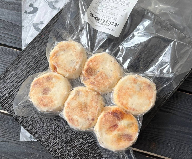 Описание: Классические сырники из фермерского творога с добавлением изюма. Лакомство приготовлено по традиционным рецептам и уже полностью готово. Осталось только подогреть их для сытного завтрака.