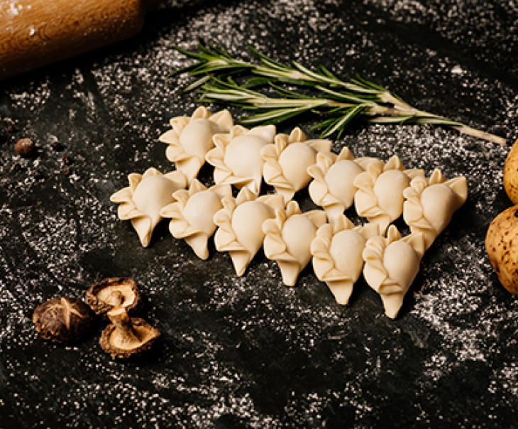 Описание: Хотите вкусных вареников с картофелем и грибами? Попробуйте вареники с картофелем и грибами ручной лепки. В составе только натуральные продукты. Тонкое тесто и щедрая порция картофельно-грибной начинки делают вареники невероятно сытными. Приготовьте наши вареники с картофелем и грибами на ужин, это вкусно, быстро и очень просто!